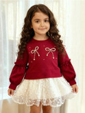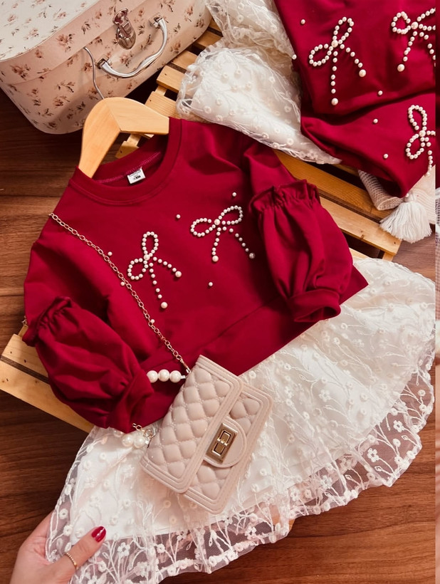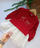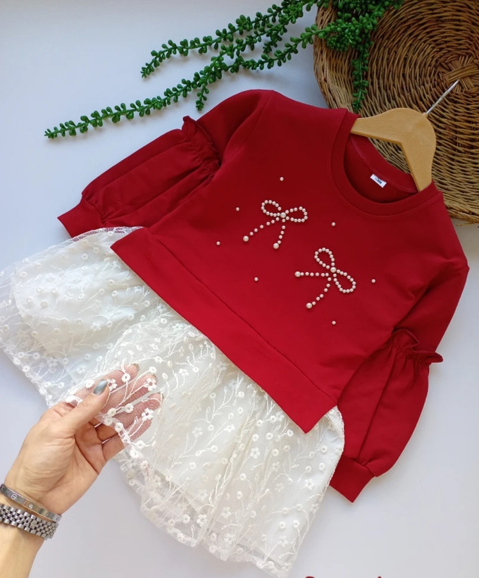پیراهن یلدایی دخترانه جنس دورس و گیپور برند کیدس