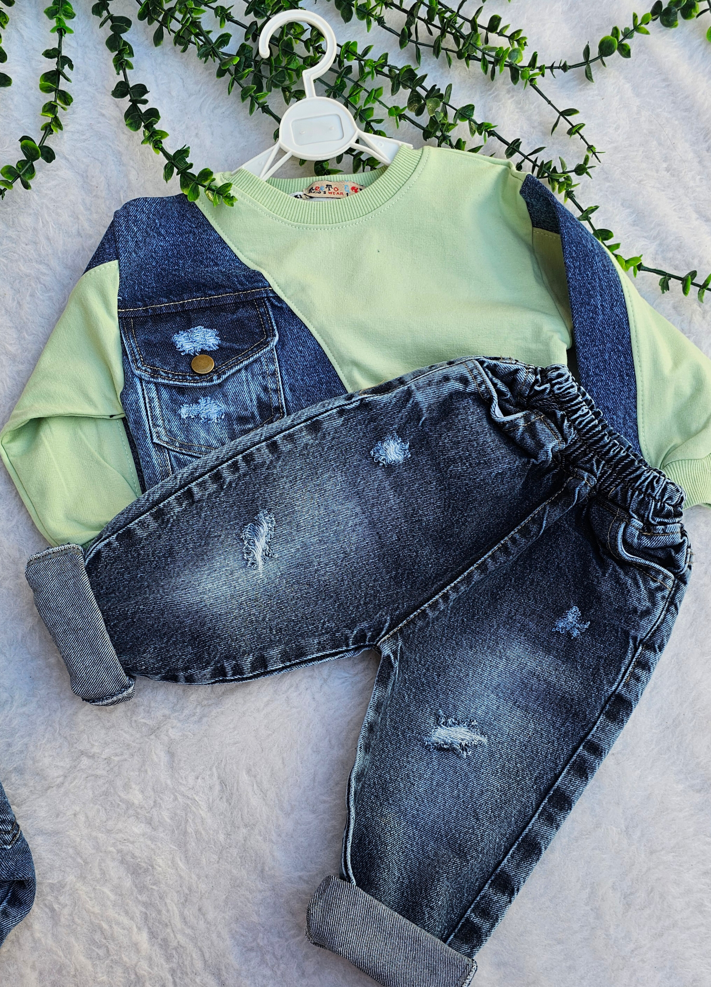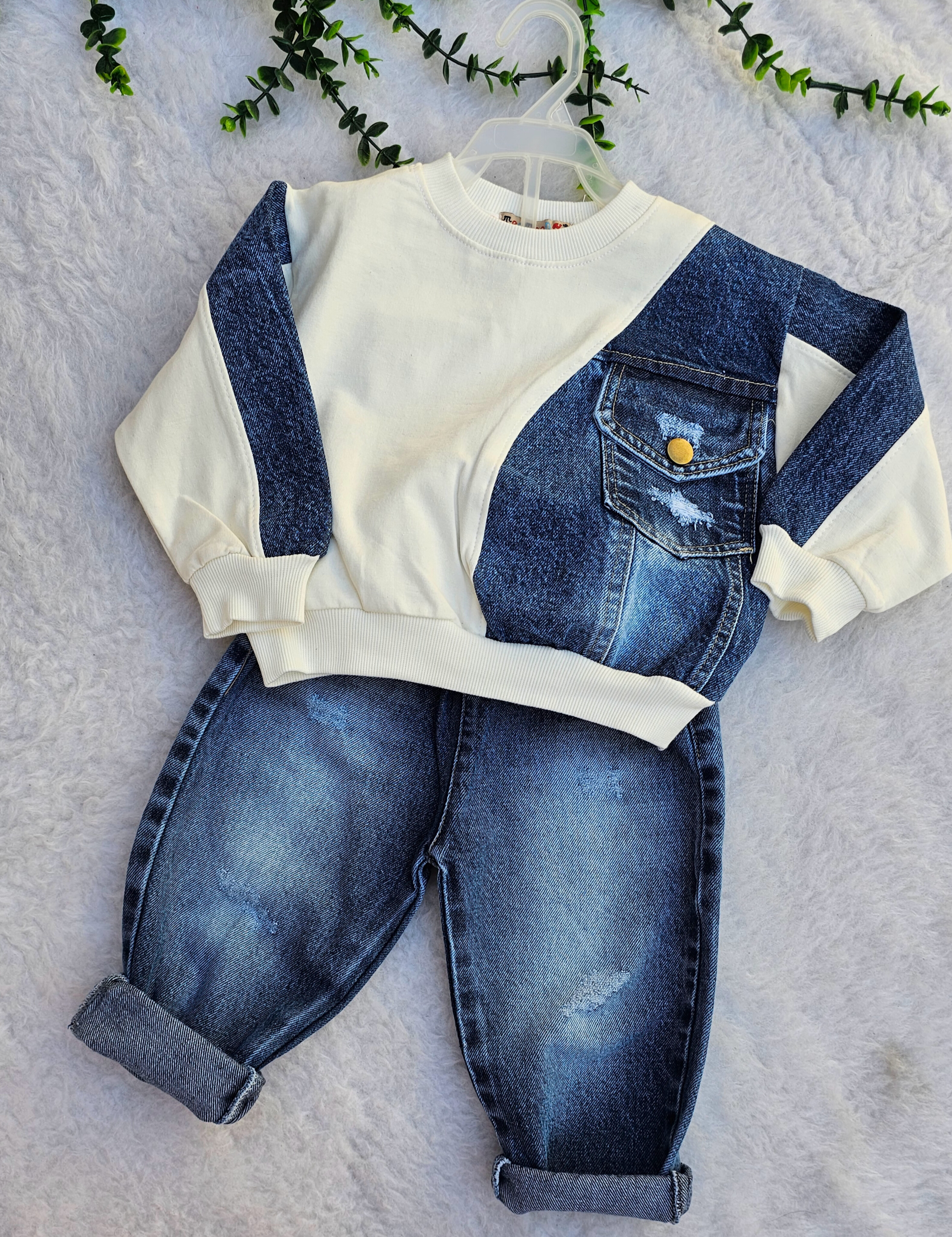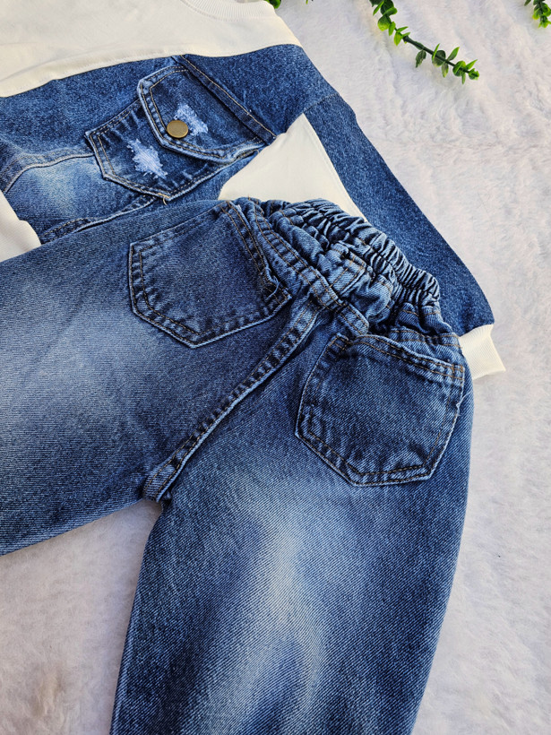 بلوز جنس پنبه ست شده با تیکه دوزی جین پنبه گرم بالا و با کیفیت که یه جیب بسیار زیبا و کاربردی روی بلوز دوخته شده و شلوار مام استایل که دو تا جیب جلو و یه جیب پشت لباس میخوره بسیار شلوار نرم و لطیف جین شست رفته و بهیچ عنوان رنگ پس نمیده