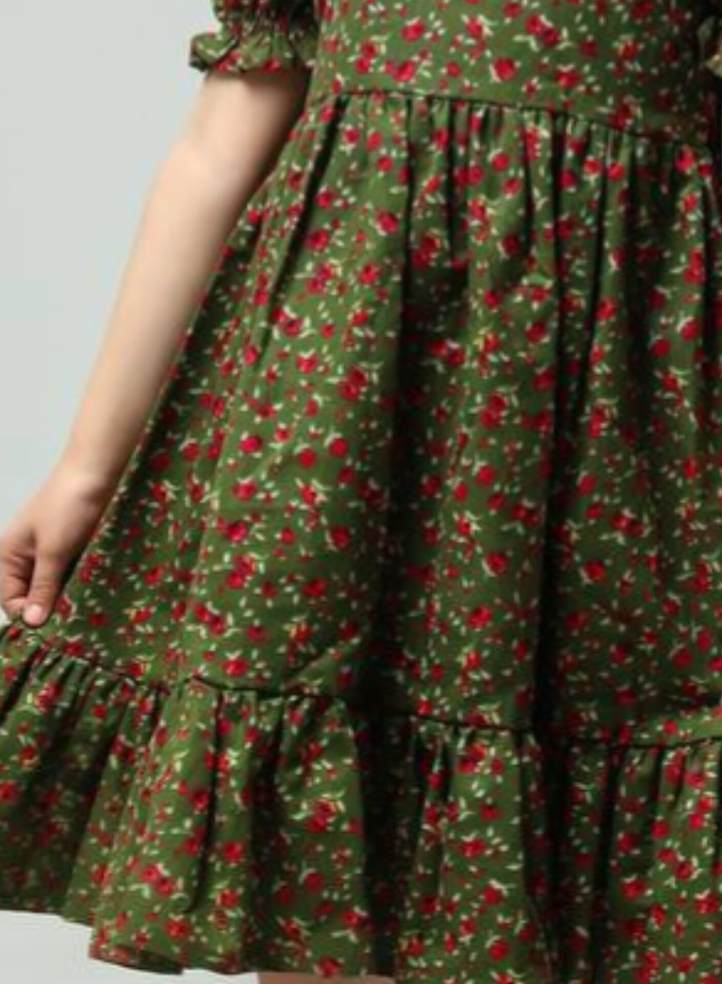 سارافون جنس لنین گرم بالا بدون آبرفت و پرزدهی جنس پارچه از نزدیک خیلی با کیفیت تراز عکس هستش رنگ زیبای سبز همراه گل سرخ برند دلوان آستین های پفی جذابی داره و بند تنظیم کمر داره پشت کار هم برای راحتی زیپ مخفی خورده