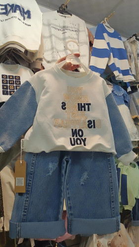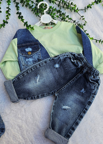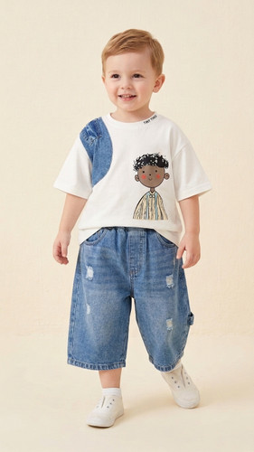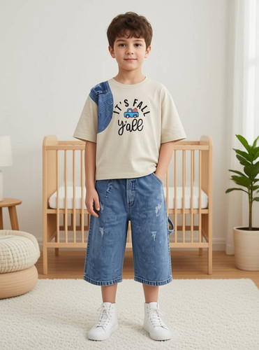 ست تیشرت شلوارک جین قواره لش پسرانه تیکه دوزی لی داره و بسیار با کیفیت از برند کیدس
