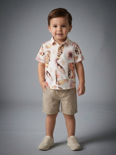 ست بلوز و شلوارک کتان بسیار با کیفیت پسرانه برند گوفی کیدس