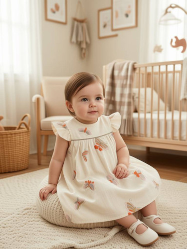 سارافون جنس لنین گیاهی گرم بالاهمراه گلدوزی پروانه برند نینی نو